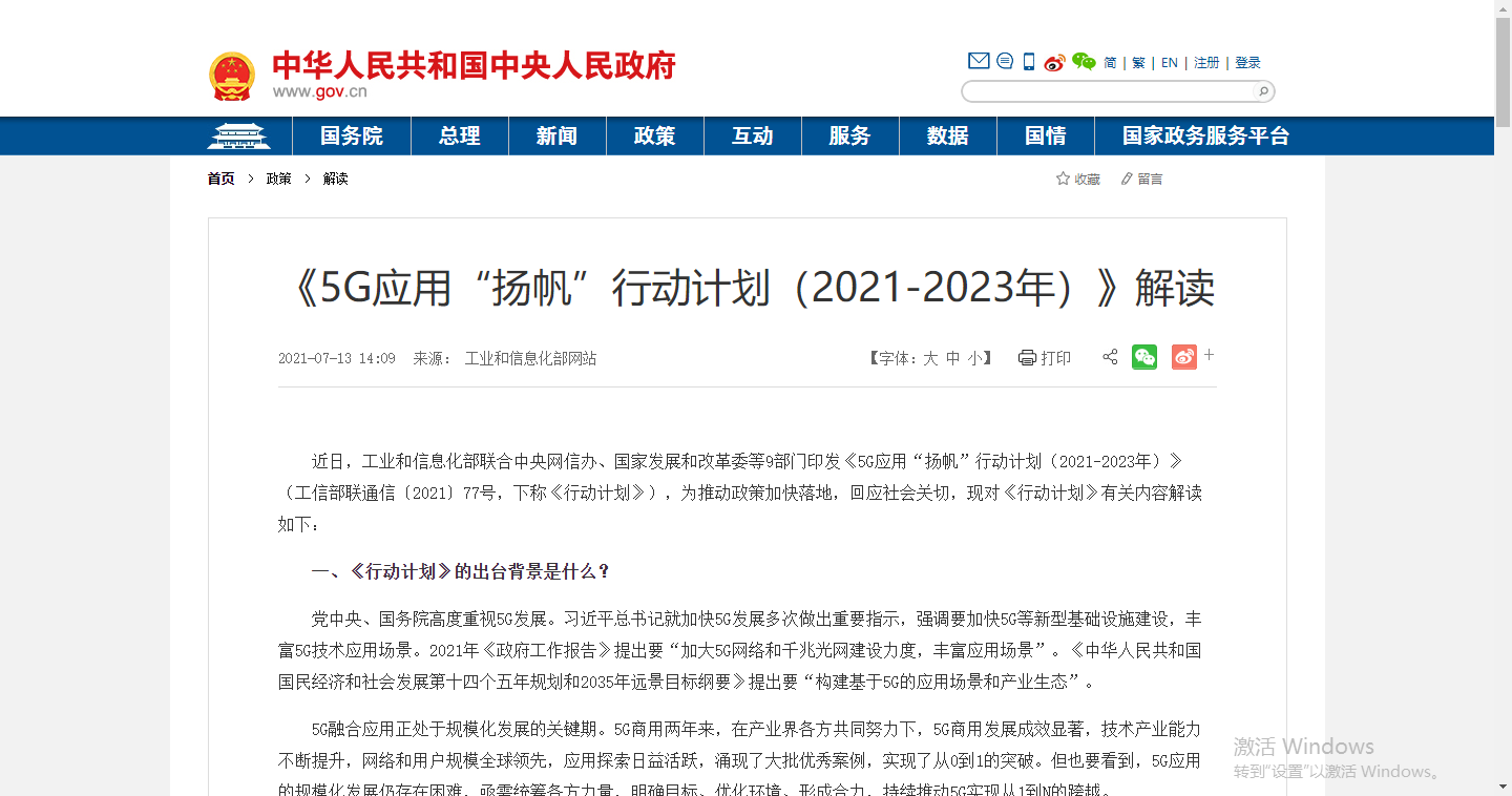 現將《5G應用“揚帆”行動計劃(2021-2023年)》印發給你們,請結合實際認真貫徹落實。
