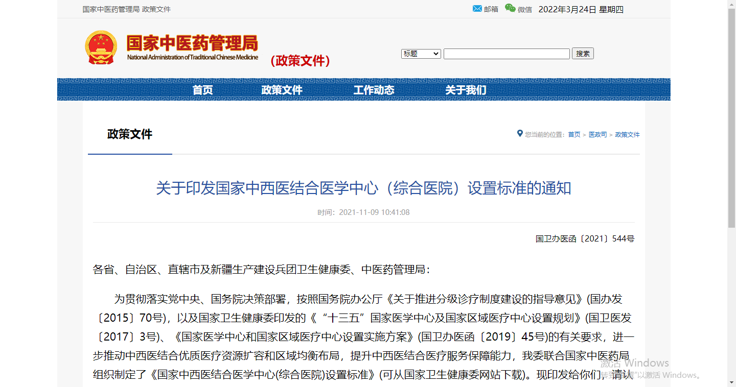 2021年11月8日,國(guó)家衛(wèi)生健康委發(fā)布《關(guān)于印發(fā)國(guó)家中西醫(yī)結(jié)合醫(yī)學(xué)中心(綜合醫(yī)院)設(shè)置標(biāo)準(zhǔn)的通知》(以下簡(jiǎn)稱《設(shè)置標(biāo)準(zhǔn)》),要求國(guó)家中西醫(yī)結(jié)合醫(yī)學(xué)中心(綜合醫(yī)院)應(yīng)當(dāng)為中西醫(yī)結(jié)合診療水平全國(guó)領(lǐng)先的三級(jí)甲等智慧醫(yī)療綜合醫(yī)院,具備涵蓋多個(gè)專業(yè)的獨(dú)立設(shè)置中西醫(yī)結(jié)合或中醫(yī)科室,中西醫(yī)結(jié)合、中醫(yī)執(zhí)業(yè)醫(yī)師占全院醫(yī)師比例不低于10%。