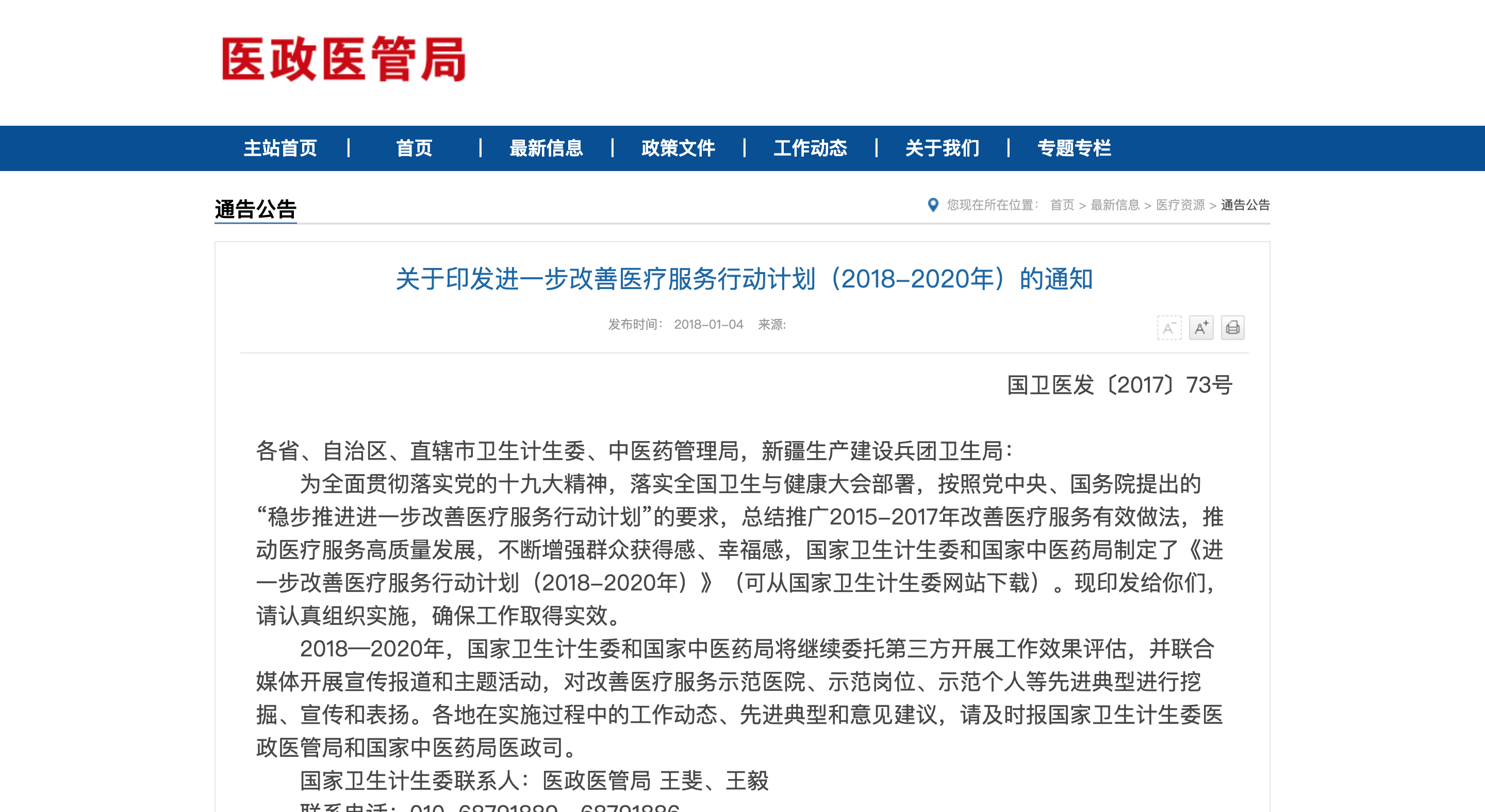 貫徹落實國家衛生計生委進一步改善醫療服務行動計劃,做好改善醫療服務行動計劃工作。