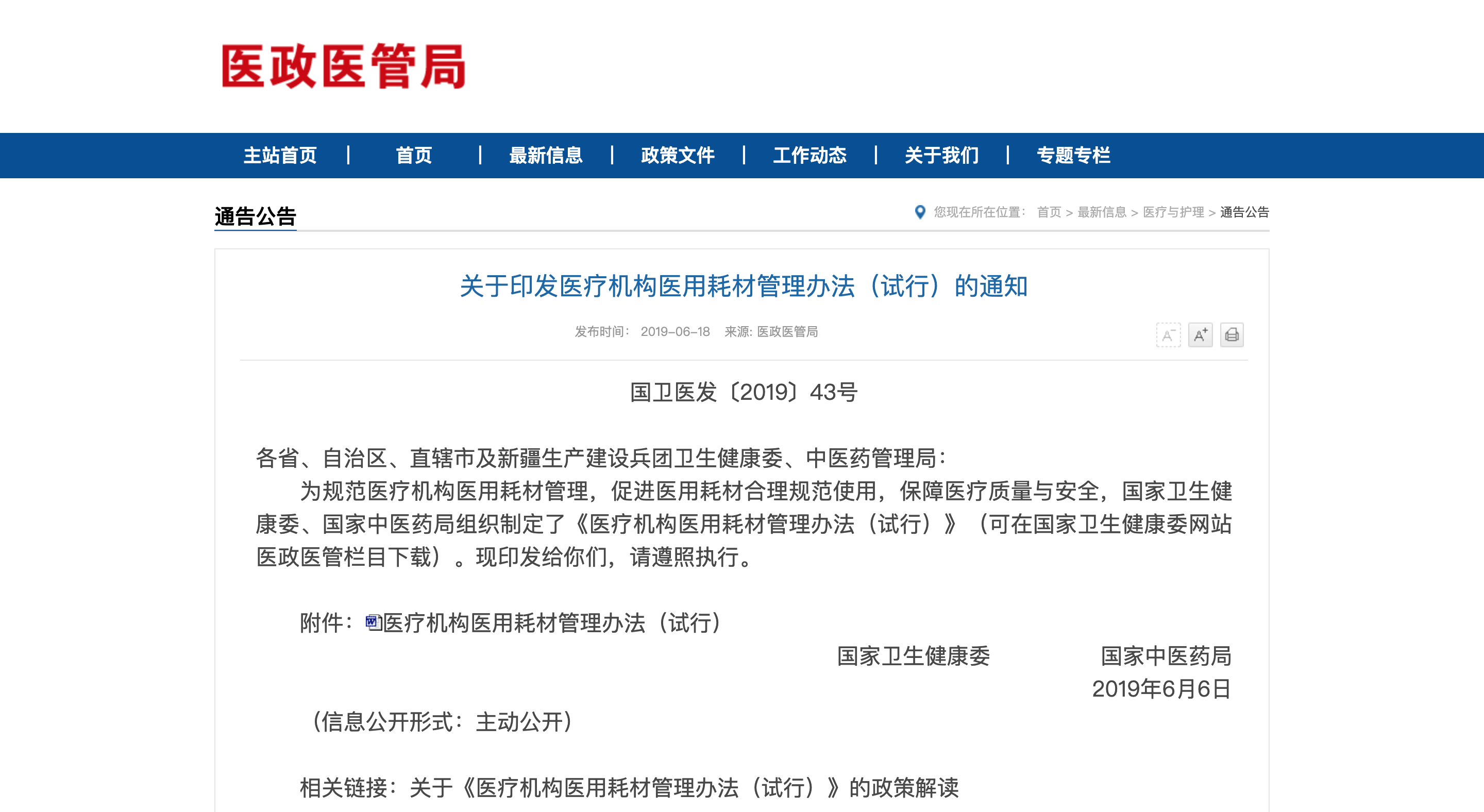 為規范醫療機構醫用耗材管理,促進醫用耗材合理規范使用,保障醫療質量與安全,國家衛生健康委、國家中醫藥局組織制定了《醫療機構醫用耗材管理辦法(試行)》
