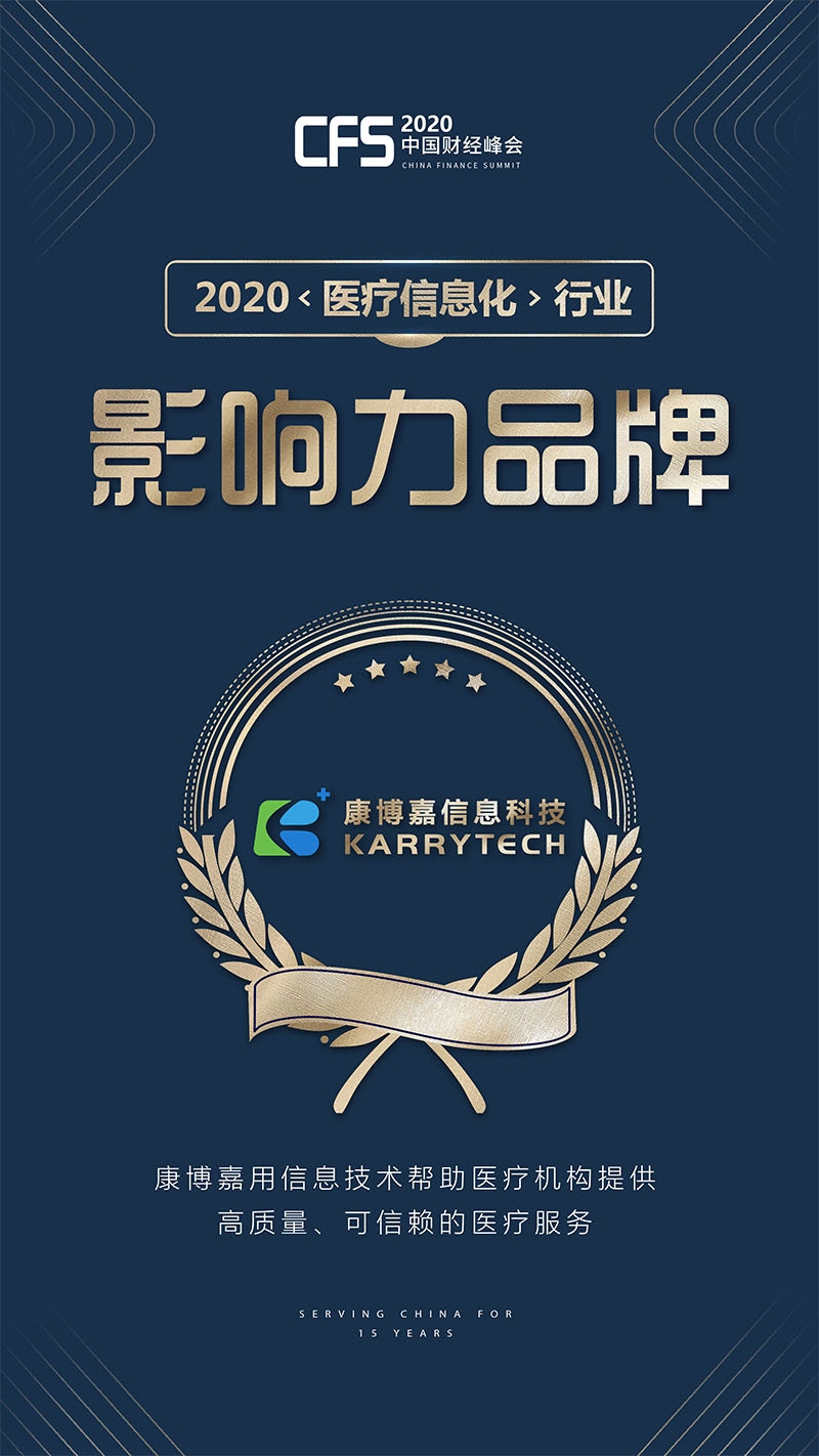 近日,CFS第九屆中國財經峰會獲獎名單揭曉,康博嘉榮譽之路再創新高,一舉榮獲2020「(醫療信息化)行業影響力品牌」,創始人兼CEO祖凱先生榮獲「(醫療信息化)行業影響力人物」大獎。值得一提的是,這兩個獎項是繼2019年后再次獲得的行業類大獎。此次獲獎也再次證明了康博嘉和企業領導者在醫療信息化領域所取得的突出成就,助力智慧醫療加速變革。