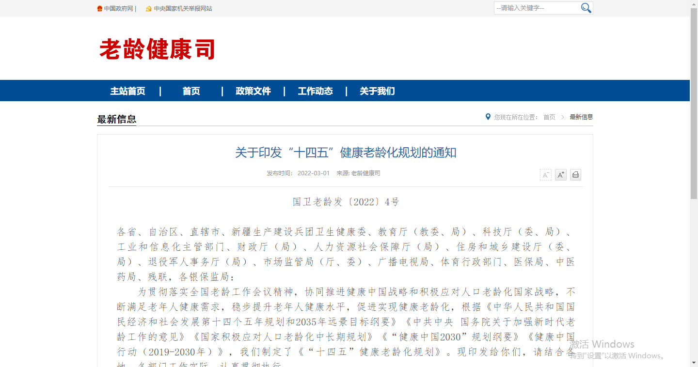 關(guān)于印發(fā)“十四五”健康老齡化規(guī)劃的通知