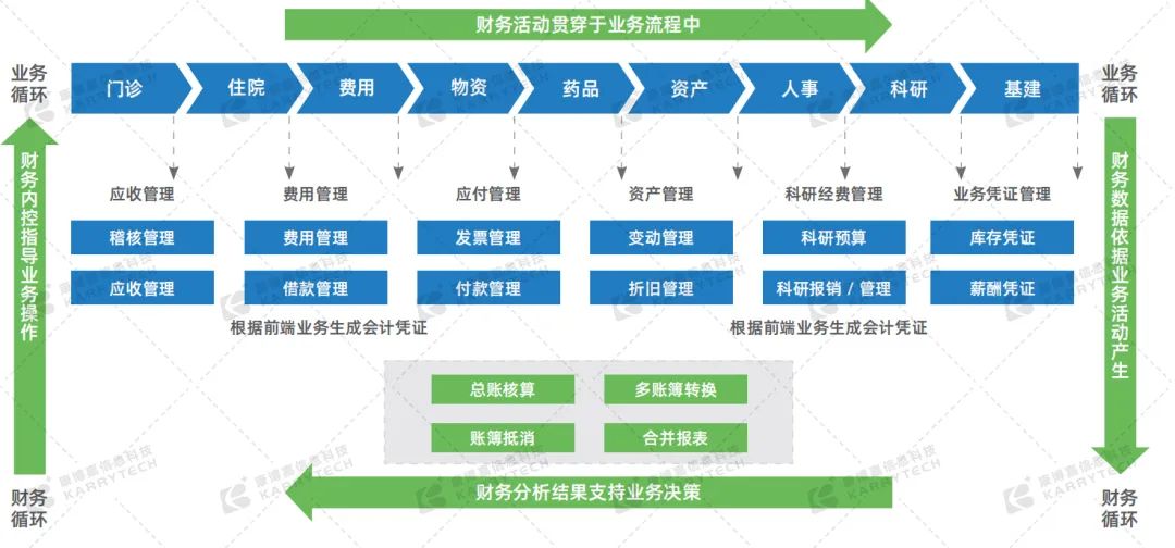 隨著醫院規模和業務量的不斷增長,財務手工制證的工作量愈發龐大。為了能夠提高財務核算的效率和準確度,陽光融和醫院將深度推進業財一體化,將信息化管理延伸到業務環節,讓業務賬可以直接生成財務賬,財務賬也能直接追溯業務賬,助力醫院搭建完善的財務控制體系。