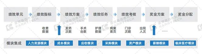 靈活定義功能適配 RBRVS、DRGs、BSC 及 KPI 等多種績效考核方案,集合人力資源、成本、薪酬、資產及臨床醫療等模塊,支持從績效單元制定至獎金分配的全流程實施。