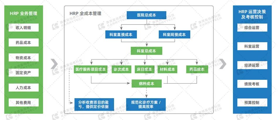 康博嘉HRP智慧管理解決方案,能夠通過分析科室成本構成實現總成本控制,并支持病種成本核算優化診療方案、制定合理臨床路徑。