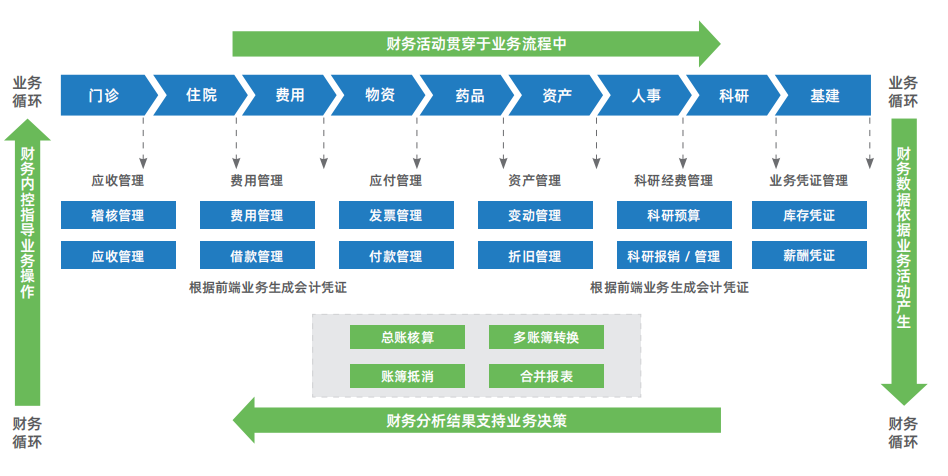 助力醫院形成業務信息流與財務流合二為一的統一平臺管理,讓業務賬可以直接生成財務賬,財務賬直接追溯查看業務賬。