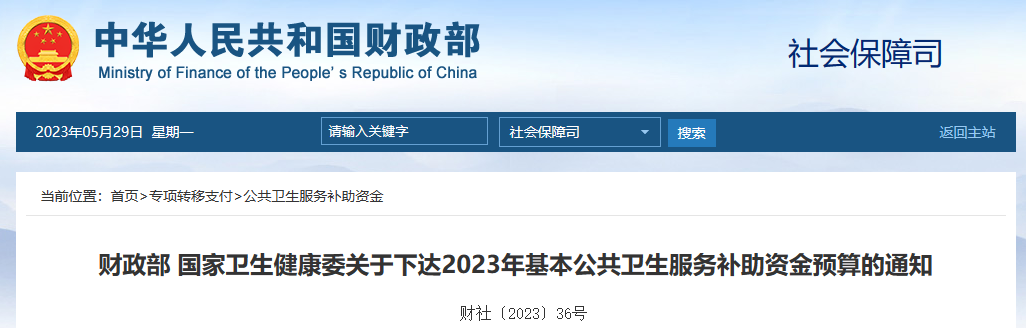 最近,財政部和國家衛健委發布《關于下達2023年基本公共衛生服務補助資金預算的通知》。