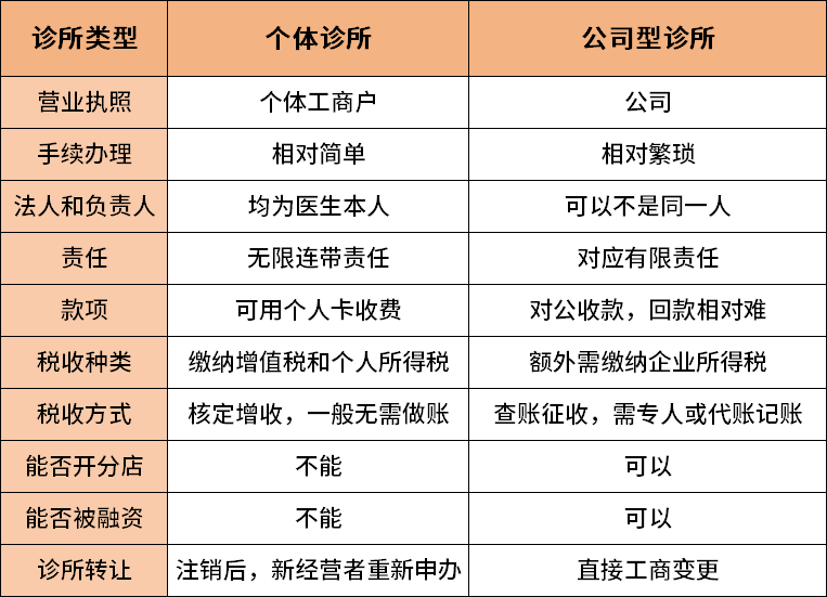 總的來說,如果你只想單干,那么就選擇成本低,好管理的私人診所;如果你有更宏大的志向,想開連鎖、融資投資,那么開管理靈活,具有廣闊發展空間的公司是更好的選擇。