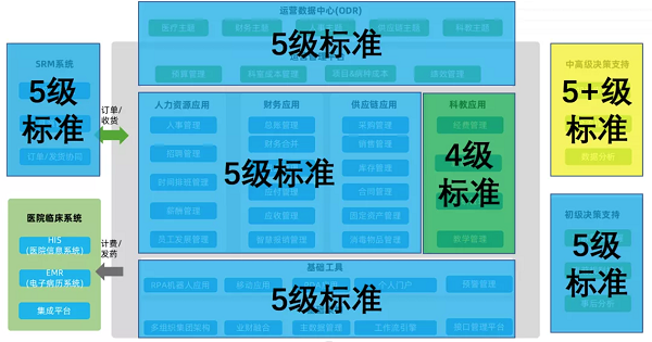 五級為最高評級的情況下,康博嘉的HRP系統在包括人力資源管理、財務資產管理、設備設施管理、藥品耗材管理、運營管理、教學科研管理、以及辦公管理等工作角色中,基本全面達到4級以上覆蓋。