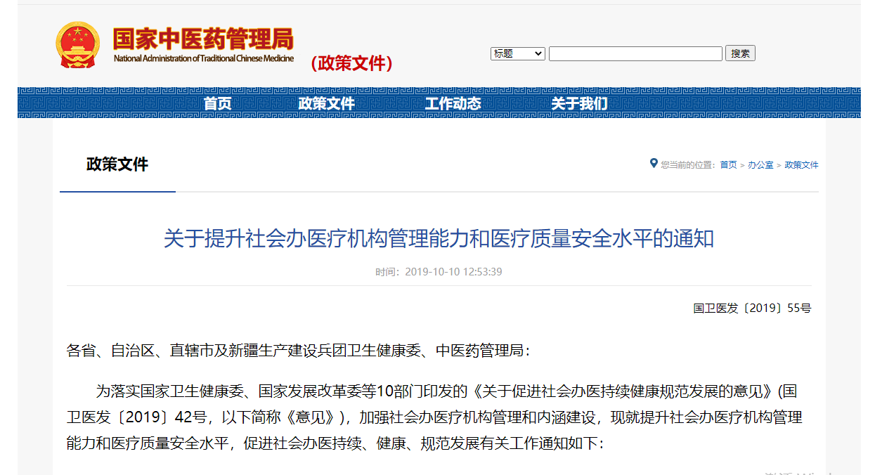為落實國家衛生健康委、國家發展改革委等10部門印發的《關于促進社會辦醫持續健康規范發展的意見》(國衛醫發〔2019〕42號,以下簡稱《意見》),加強社會辦醫療機構管理和內涵建設,現就提升社會辦醫療機構管理能力和醫療質量安全水平,促進社會辦醫持續、健康、規范發展有關工作通知如下: