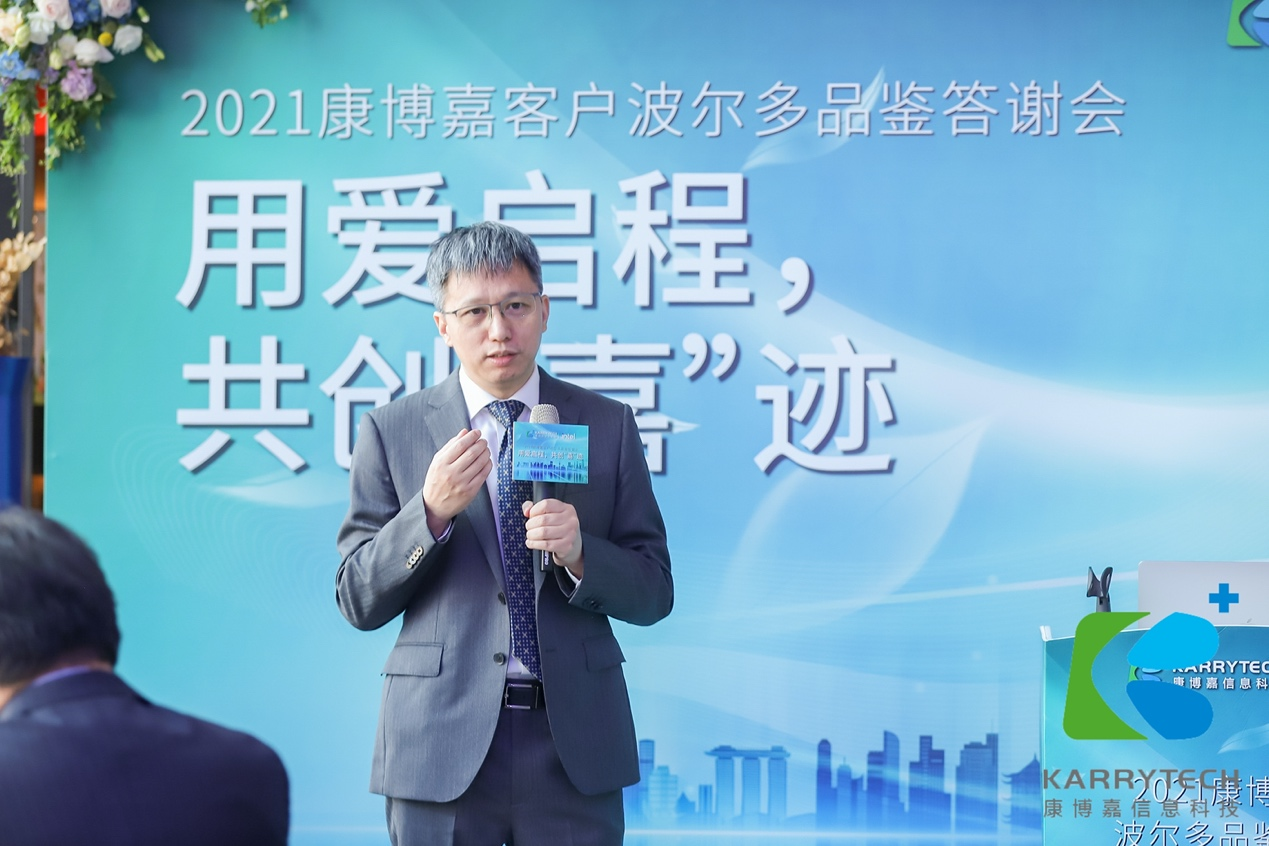 百匯醫療中國區信息技術部負責人黃仁智先生非常肯定康博嘉對于客戶需求的充分溝通、理解與響應能力。黃總來自獅城新加坡,對中國文化很著迷,在分享中引用了很多中國典故及諺語,雖然發音很“特別”,但絲毫不影響臺下嘉賓的興致與理解。黃總尤其提到,2021年春節正是百匯項目上線的關鍵時刻,康博嘉團隊沒有減少一位人員,反而在每個醫療崗位都貼心地安排了值守工程師,黃總對此表達了高度的感謝,認為康博嘉可以持續超出客戶預期,在多重復雜挑戰下,仍實現卓越的交付。