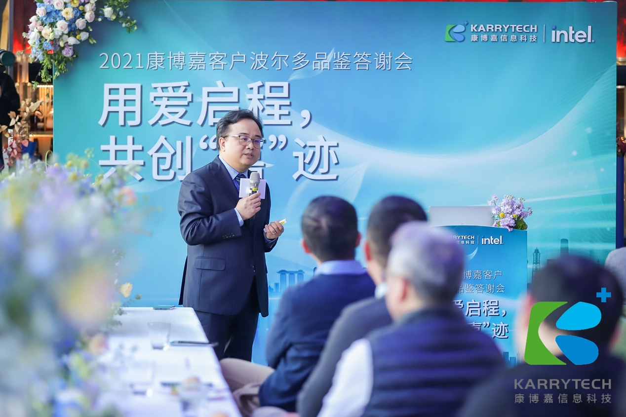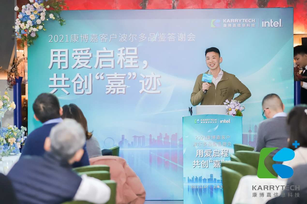 本次與康博嘉聯名合辦名莊品鑒答謝會的公司,是康博嘉緊密的行業合作伙伴英特爾。英特爾中國區醫療行業解決方案技術總監吳一鳴先生代表英特爾發表了以“醫療健康產業的‘芯’助力”為主題的精彩演講,吳總結合民營醫院高品質、差異化的發展趨勢,解析了智慧醫院的五大場景,并闡述了英特爾數字醫療服務平臺從科技創新、技術貢獻、人才培養上對醫療機構數字化轉型賦能的碩果。