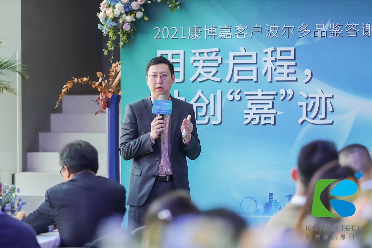 康博嘉聯合創始人陳智先生緊接祖總,為各位到場嘉賓回顧了康博嘉項目在2021年的關鍵時刻:百匯醫療集團HIS上線,佛山復星禪誠醫院HRP運行、哥倫比亞醫療集團嘉興凱宜醫院開業準備、智匯未來HIS/HRP/HCRM整體解決方案的有序推進、和上海星晨兒童醫院及杭州貝瑞斯醫療集團的HCRM建設項目等。康博嘉與客戶能夠取得共同成功,不僅源于客戶對醫療信息化的重視與決心,借用百匯醫療中國區銷售和市場部副總裁梁亦女士的認可——“康博嘉總在客戶提出需求之前,已為客戶提供了洞察需求的解決方案。”