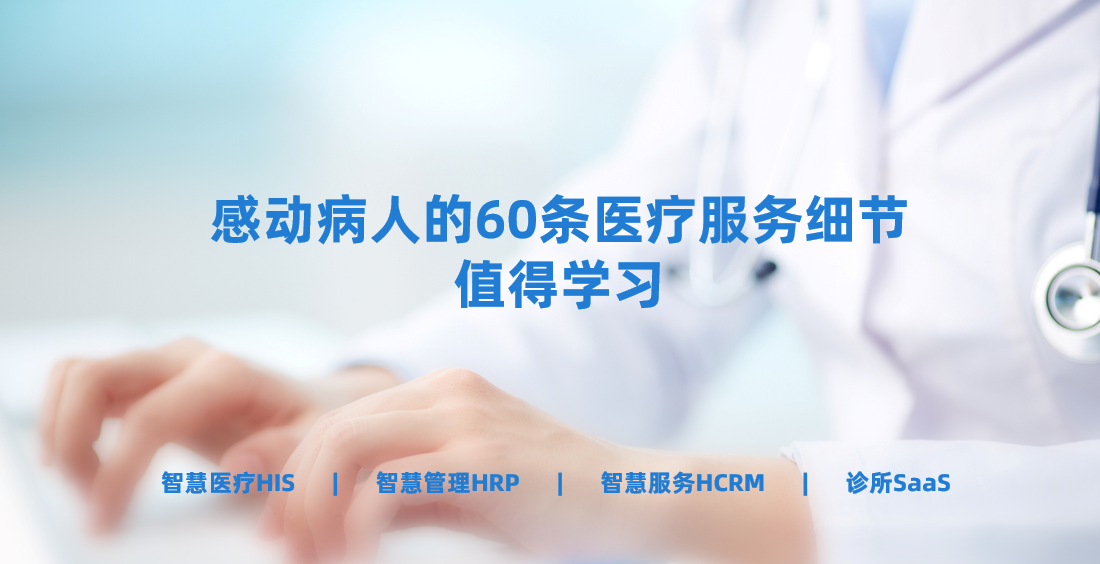 在醫療市場化不斷加劇的背景下,醫療的服務屬性被不斷強化。細節服務其實很多醫院/診所都在做只是不夠完善,下面小編給大家分享60條感動患者的服務小細節,很多時候,運用好醫療crm,再加上這些無微不至的溫暖關懷,患者心里會感到很有溫度,更能一定程度地緩解緊張的醫患關系。