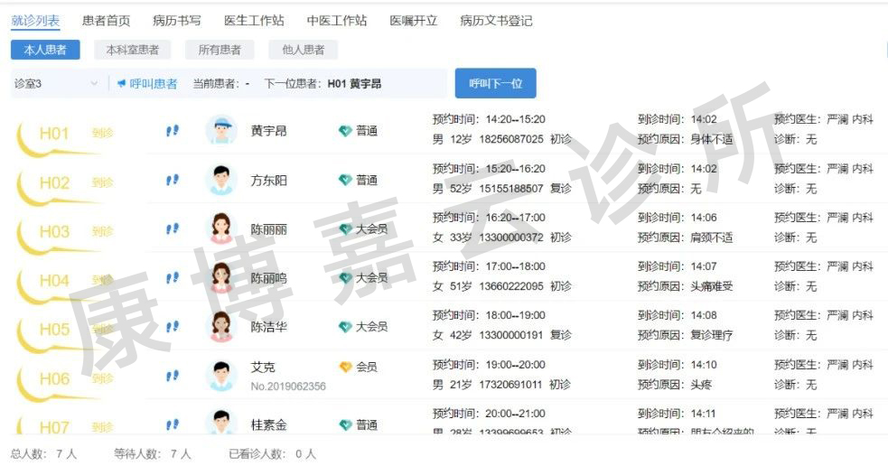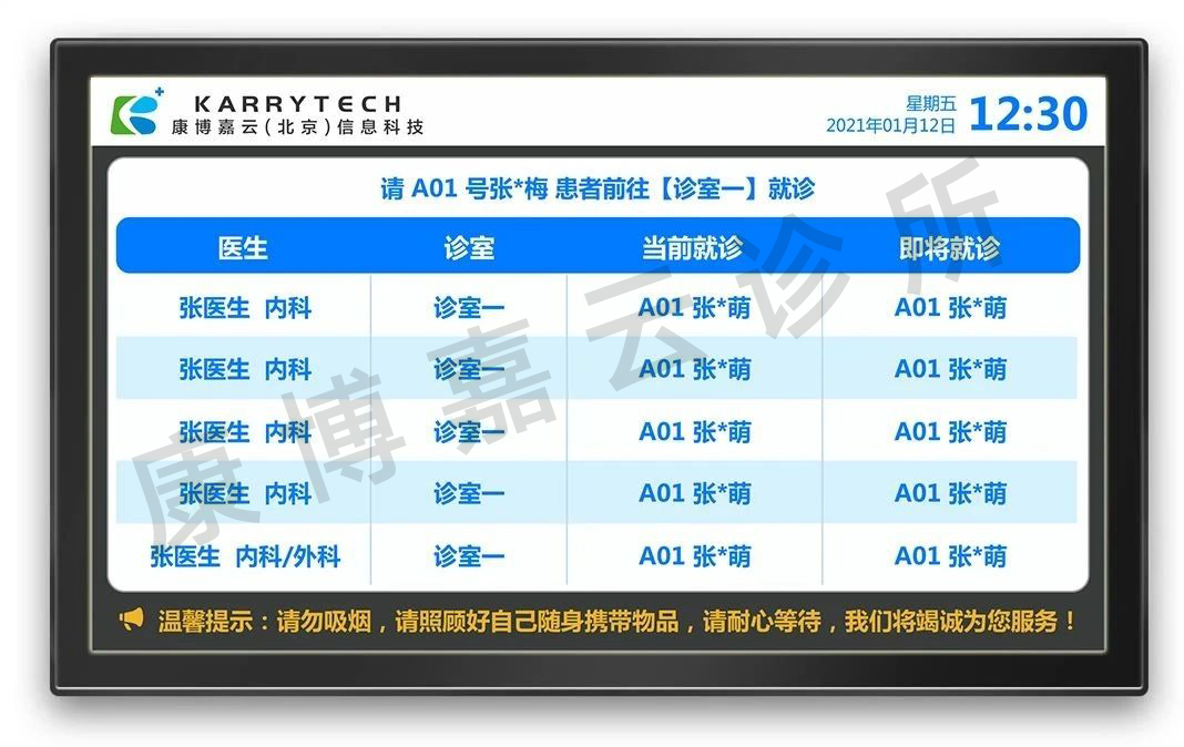 除了文中提到的門診部外,還有眾多中醫、??啤⑷圃\所也上線了康博嘉云診所管理系統增值功能——叫號服務,診所只需要配備一臺普通的互聯網電視和工作用的電腦,就能完成屏幕內容設置、叫號管控、查看排隊情況、協助患者排號等工作。