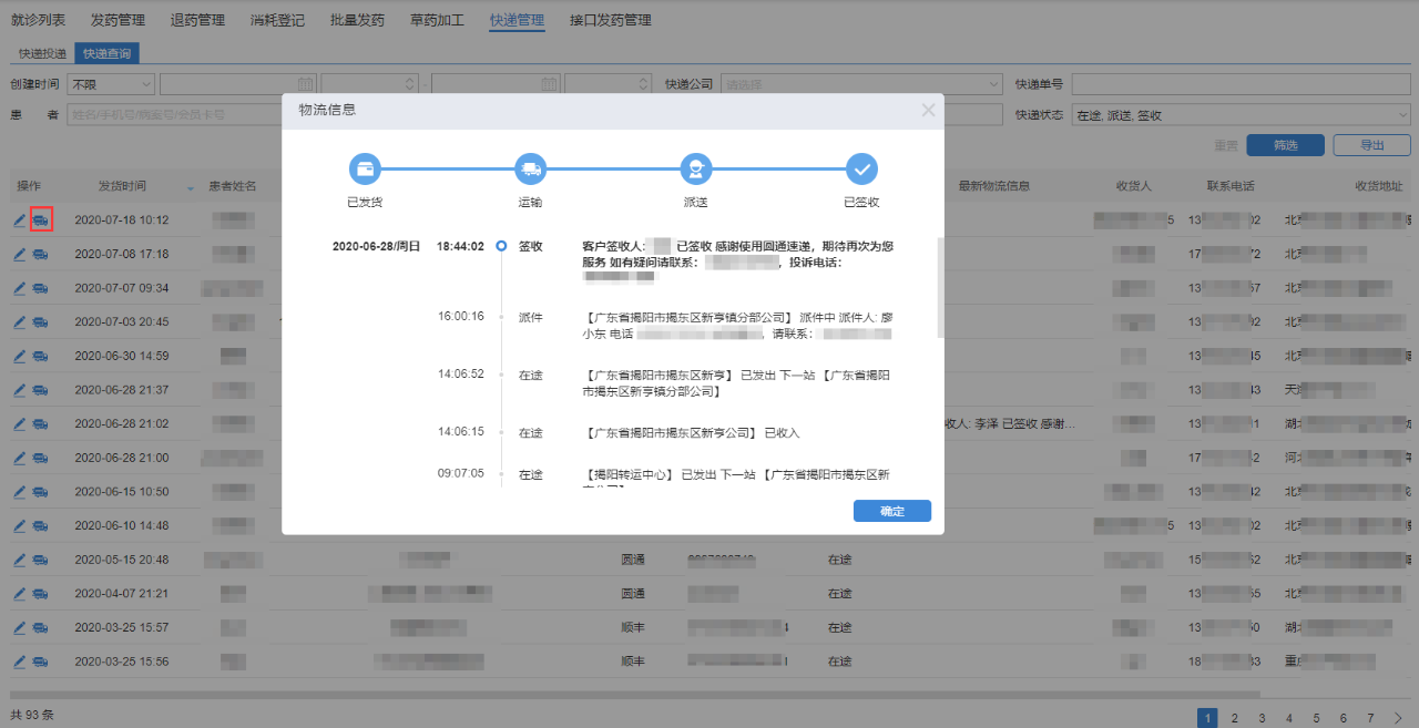 產(chǎn)品進(jìn)入快遞環(huán)節(jié)后,診所人員和顧客都能隨時(shí)查看到相應(yīng)的快遞信息。