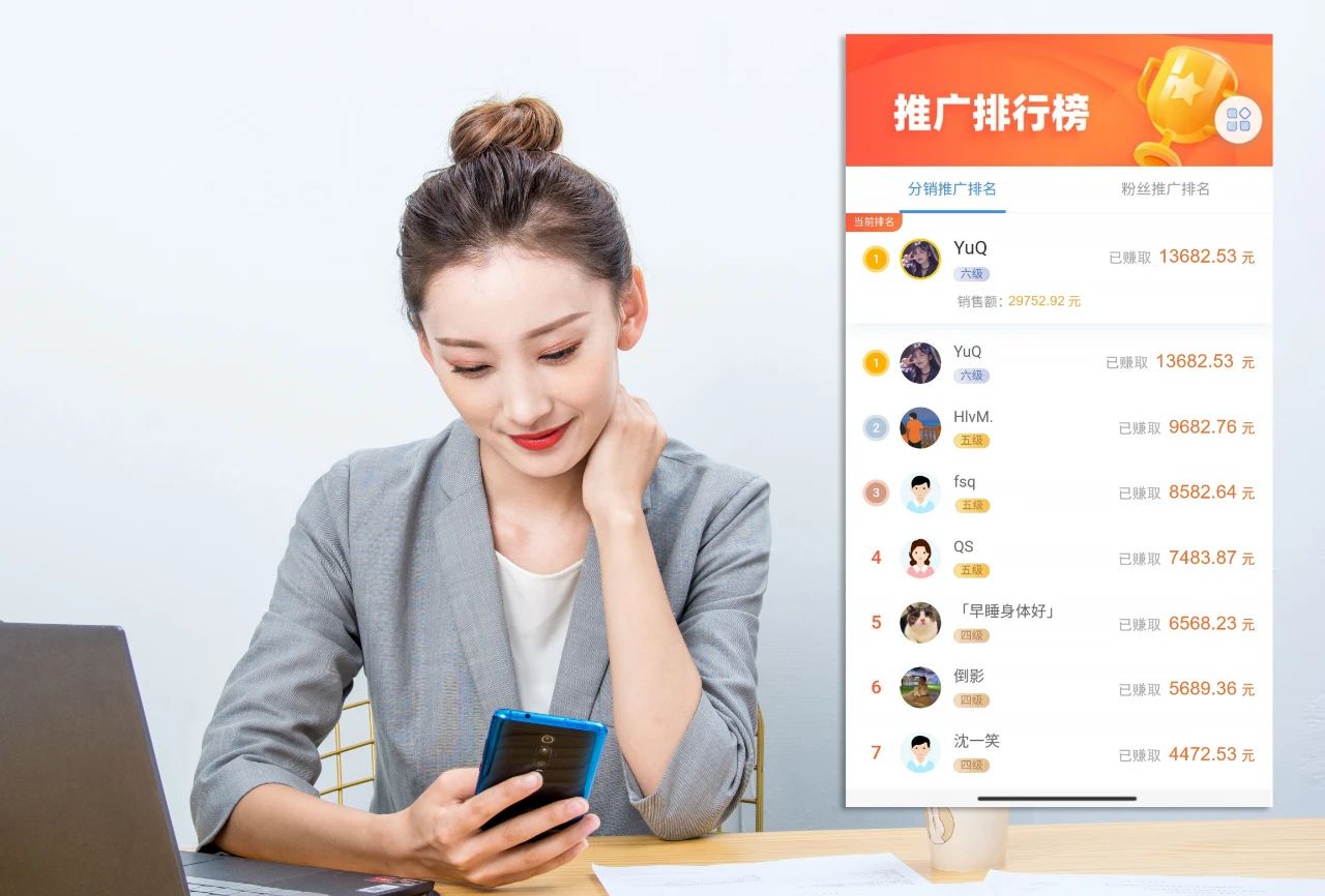 我們給參與分銷的種子顧客設置了階梯式的晉級機制,分銷等級晉級后,對應的分銷系數會相應增加(可以理解為提成比例增加)。前期的升級條件較為簡單,后續逐漸加大升級條件。