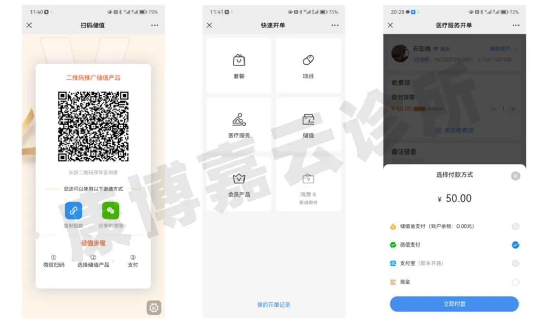 云診所移動(dòng)辦公平臺(tái)擁有移動(dòng)營(yíng)銷(xiāo)功能,義診活動(dòng)可以提前設(shè)置好推廣產(chǎn)品,顧客掃碼就能查看相關(guān)產(chǎn)品說(shuō)明;當(dāng)然,患者邀請(qǐng)、商城推廣儲(chǔ)值產(chǎn)品推廣會(huì)員產(chǎn)品推廣等其他營(yíng)銷(xiāo)活動(dòng),銷(xiāo)售人員也可以用手機(jī)直接給線上的顧客推送相關(guān)內(nèi)容,顧客更直觀,銷(xiāo)售起來(lái)也更加得心應(yīng)手。