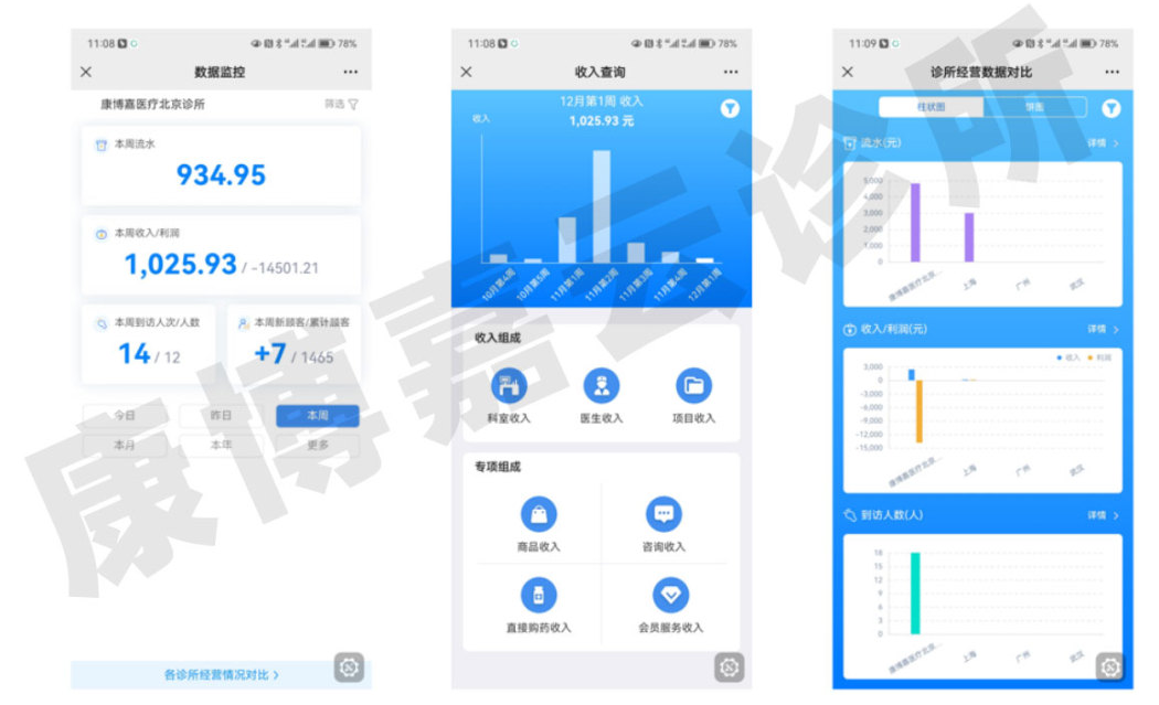 云診所移動(dòng)辦公平臺(tái)可以幫助診所管理者隨時(shí)隨地監(jiān)控到診所經(jīng)營(yíng)情況。管理者可以在移動(dòng)端上查看每日經(jīng)營(yíng)數(shù)據(jù),通過(guò)收入、流水、就診數(shù)量、新患者數(shù)量等關(guān)鍵經(jīng)營(yíng)指標(biāo)和明細(xì)分析,掌握診所經(jīng)營(yíng)情況并及時(shí)發(fā)現(xiàn)問(wèn)題;對(duì)于連鎖診所,管理者還能橫向?qū)Ρ?/strong>各個(gè)分店相同指標(biāo)的達(dá)成情況。除此之外,管理者還可以訂閱經(jīng)營(yíng)數(shù)據(jù)消息,定期收到診所經(jīng)營(yíng)報(bào)告,讓管理變得更輕松。