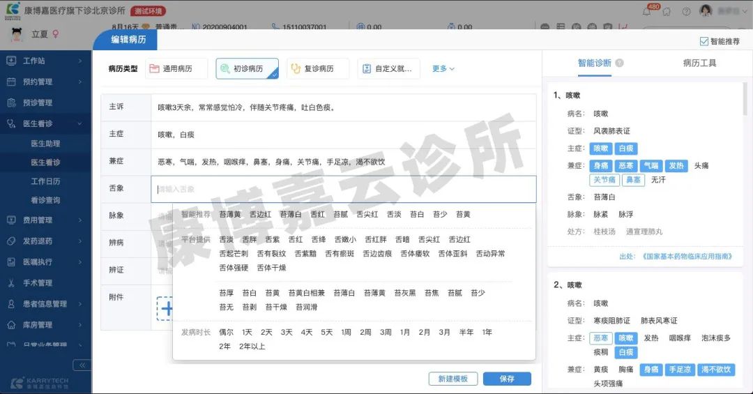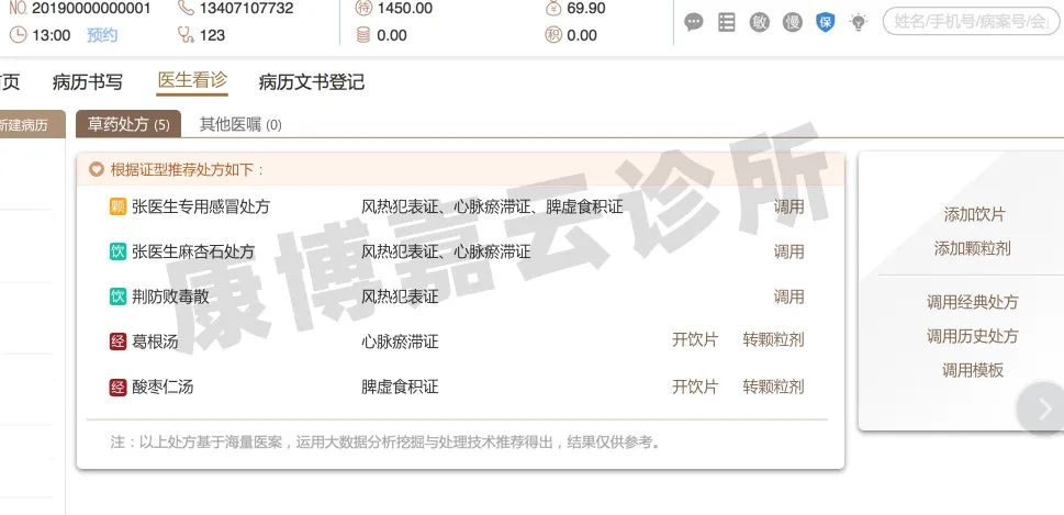 與此同時,康博嘉云診所管理軟件智能中醫會自主分析醫生填寫的若干癥狀,并在海量經典醫案庫中進行實時分析,計算出最符合當前病例情況的案例,供醫生參考和選擇。