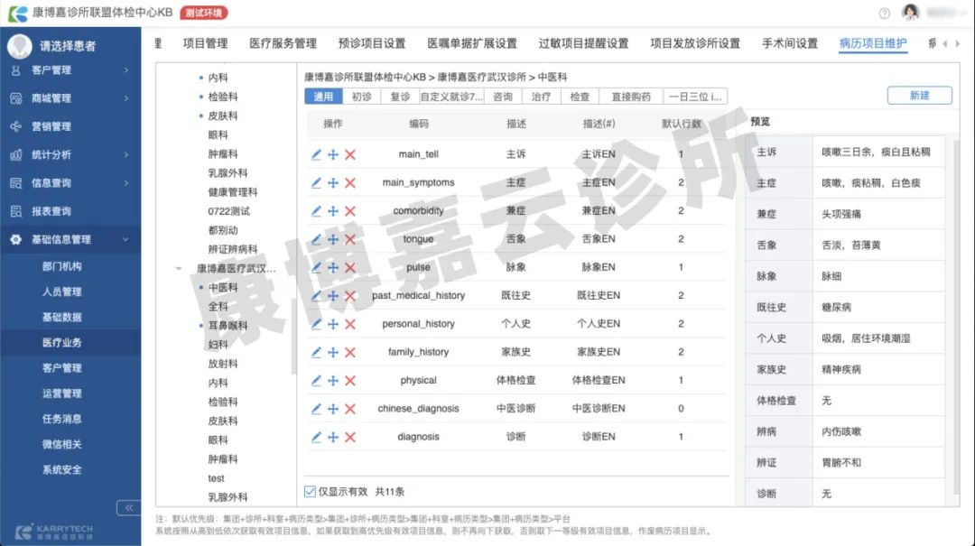 康博嘉云診所管理軟件中醫知識庫涵蓋內科、外科、耳鼻喉科、眼科、骨傷科、婦科等多個臨床科室常用癥狀、1000+中醫疾病和2000+中醫證型。