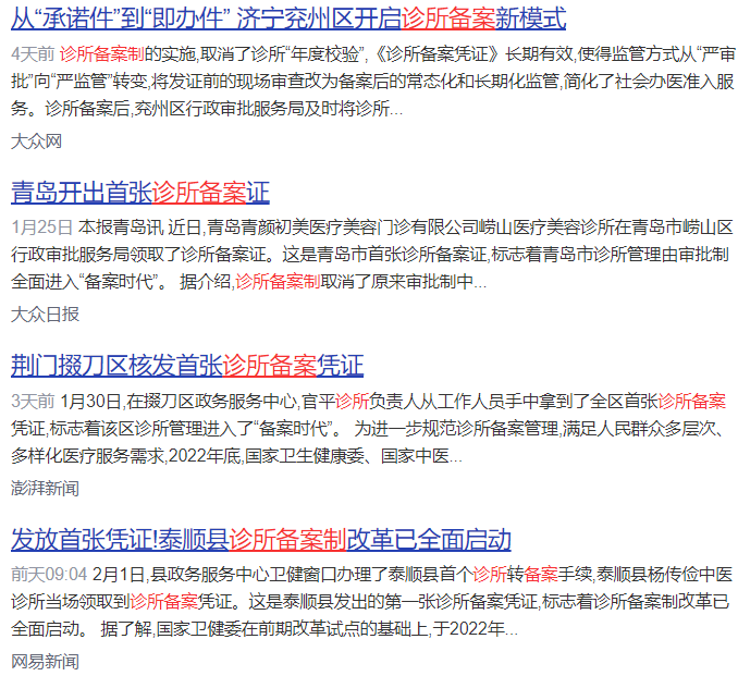 2019年到2022年期間,衛健委在北京、上海、南京、沈陽、武漢、成都、杭州、廣州、深圳、西安等10個城市完成了診所備案試點工作,2022年底《診所備案管理暫行辦法》正式落地了。2023年,全國各地會正式開始推行《診所備案制》,只要準備好相關資料當天就能獲得診所備案的憑證!